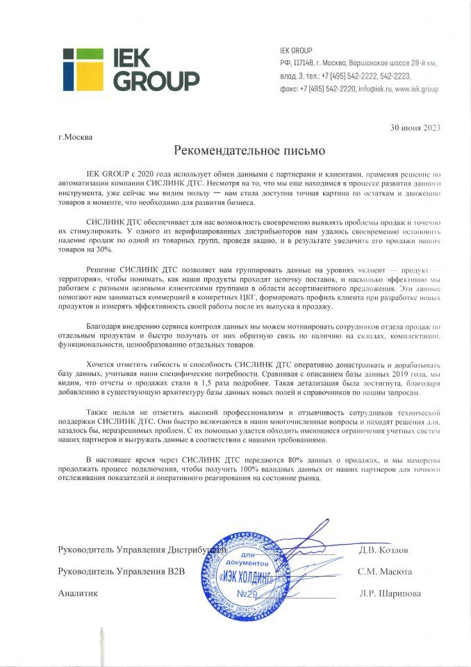 «После того, как двое крупнейших дистрибьюторов начали работать с системой DTS, идти дальше было легче. Ведь если самые крупные дистрибьюторы довольны — мы не занимаем их время, они не занимают наше, сбор и обработка данных происходят автоматически, — проще договориться с остальными».